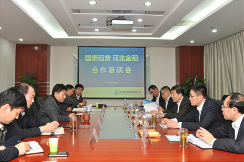 11月18日,公司董事長徐敏俊,副總裁楊繼躍、郄少杰,熱烈歡迎國泰租賃有限公司董事長尹鵬一行考察訪問,雙方在愉快、輕松的氛圍中召開了戰略簽約后的首次合作懇談會。