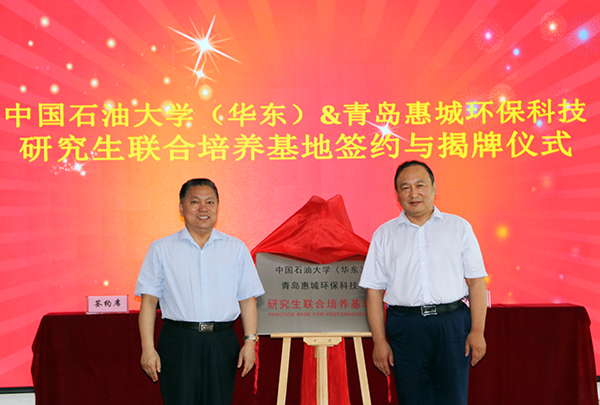 7月15日下午,“中國石油大學(華東)與青島惠城環保科技研究生聯合培養基地”揭牌儀式在公司研發中心隆重舉行,中國石油大學(華東)副校長、研究生院院長李兆敏,研究生院常務副院長閻子峰及學校其他領導、老師,我公司董事長張新功、常務副總經理葉紅攜公司核心技術人員及入職的石油大學學生代表、MBA培訓班學員代表共同出席了此次揭牌儀式。