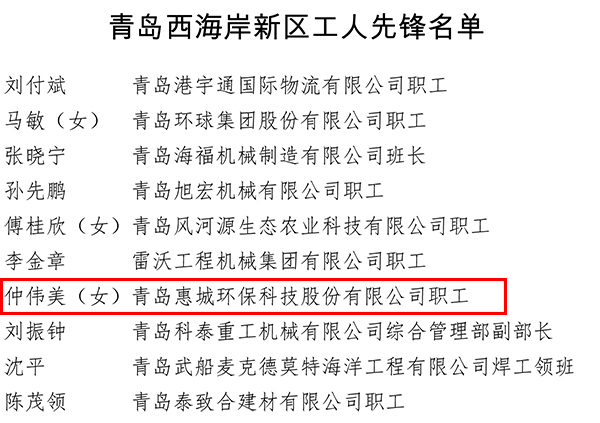 為大力弘揚(yáng)勞模精神、勞動(dòng)精神、工匠精神,激勵(lì)全區(qū)廣大職工愛崗敬業(yè),爭(zhēng)創(chuàng)一流,日前,青島西海岸新區(qū)總工會(huì)發(fā)起了新區(qū)工人先鋒(號(hào))的推薦評(píng)選工作。經(jīng)過(guò)考察評(píng)比,我公司銷售團(tuán)隊(duì)和仲偉美個(gè)人喜獲 “工人先鋒號(hào)”和“工人先鋒”榮譽(yù)稱號(hào)。