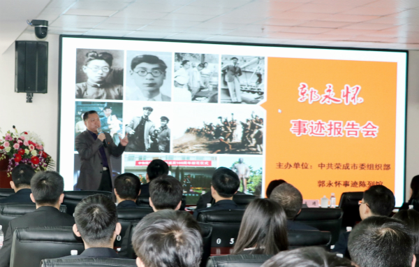 3月8日上午,榮成市委組織部郭永懷先生事跡報(bào)告宣講團(tuán)來我司舉行宣講活動(dòng),講述郭永懷先進(jìn)事跡,激勵(lì)科研人員愛國奮斗。新區(qū)工信局副局長李云峰、我司董事長張新功及公司各級(jí)管理人員、全體黨員等百余人共同聆聽了此次宣講。