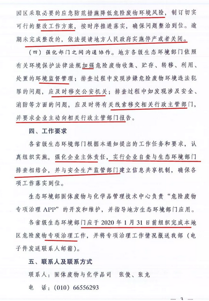 生態環境部關于開展危險廢物專項治理工作的通知