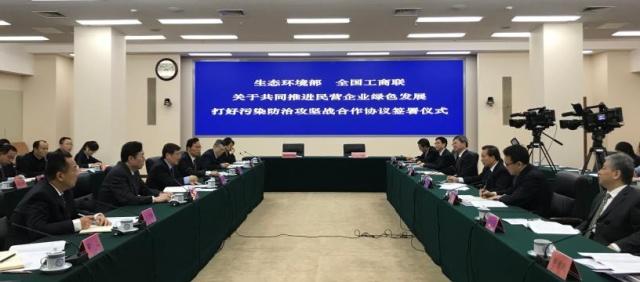 今天,生態環境部和全國工商聯簽署了“關于共同推進民營企業綠色發展 打好污染防治攻堅戰”的合作協議,聯合出臺《關于支持服務民營企業綠色發展的意見》,將通過健全市場準入機制、完善環境法規標準、規范環境執法行為、強化科技支持服務、完善環境經濟政策措施,支持民營企業提高綠色發展水平、營造公平競爭市場環境。